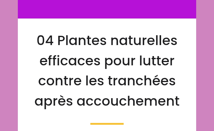 04 Plantes naturelles efficaces pour lutter contre les tranchées après accouchement Les tranchées peuvent paraître insupportable pour[…]