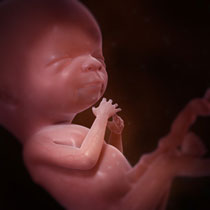 Le fœtus mesure 19 cm et pèse près de 200 g. Son squelette continue sa croissance, bien qu’il soit encore fait de cartilage mou, et les systèmes nerveux et digestif sont désormais en place.Le fœtus commence également à développer ses propres anticorps.