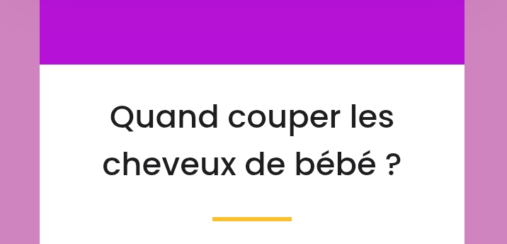 Cependant, il est préférable de couper les cheveux de bébé 6 à 12 mois après sa naissance. Ils ne sont pas encore bien répartis sur son crâne avant cet âge.
