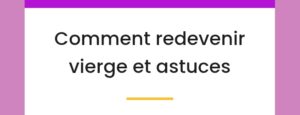 Y’a t’il véritablement des secrets de femme pour redevenir vierge?Redevenir vierge reviendrait à ne jamais avoir fait de rapports sexuels, à reposséder son hymen , caractéristique d’un vagin vierge. Tout cela n’est surtout pas possible. Pour le moment il n’existe pas des éléments capables de les retrouver.Il n’est peut-être pas possible de Redevenir Vierge, mais il est possible de résserer le vagin jusqu’à avoir la sensation de redevenir vierge tout ceci sans vous mettre en danger.